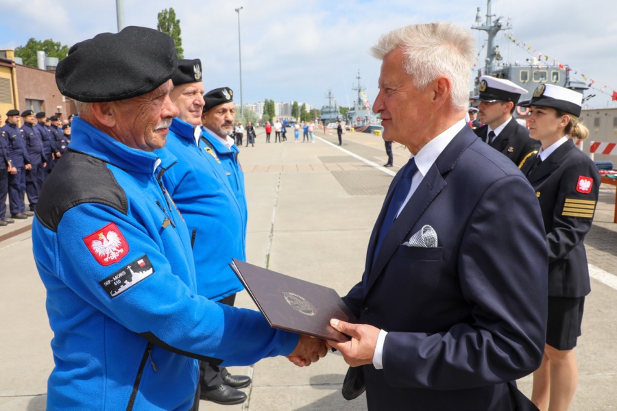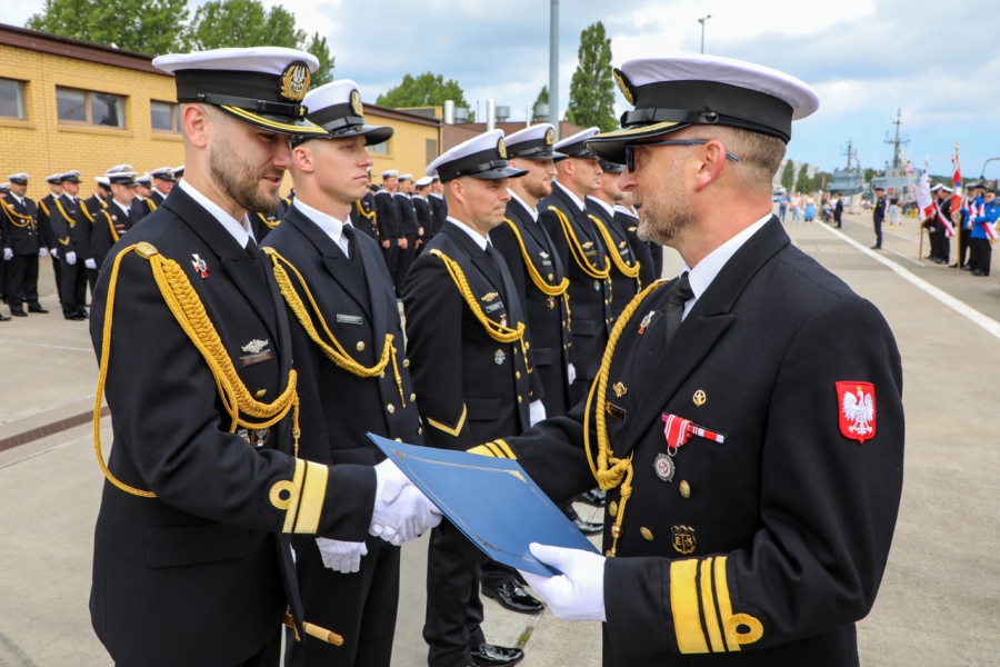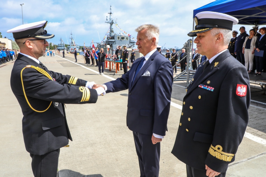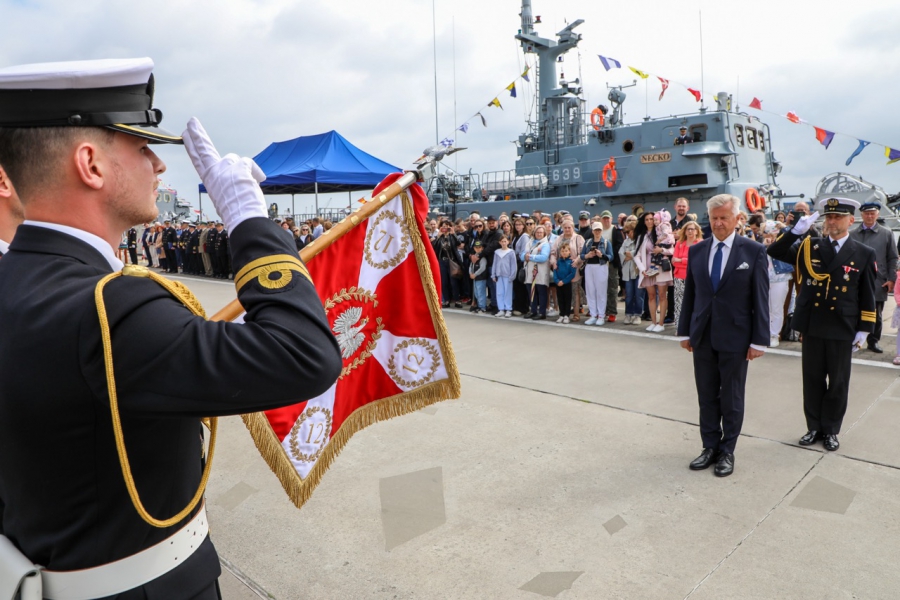 „Szanowni Państwo „Morze nie wybacza błędów” – to przysłowie znane nam wszystkim. Dlatego służba w 12 Dywizjonie Trałowców nigdy nie była łatwa. To codzienna gotowość do działania – zarówno w czasie pokoju, jak i w obliczu zagrożeń. To życie podporządkowane rytmowi służby, to poświęcenia, które składa się na ołtarzu Ojczyzny. W czasach, gdy świat się zmienia – często niepokojąco – rola Marynarki Wojennej nabiera nowego wymiaru. Dziś nie tylko bronimy wybrzeża, ale także uczestniczymy w międzynarodowych misjach, współtworzymy system bezpieczeństwa morskiego NATO, prowadzimy działania ratownicze, monitorujemy morską infrastrukturę krytyczną. Nasze okręty, tak jak dawniej trałowce, pozostają narzędziem utrzymania pokoju, stabilności i odstraszania.”