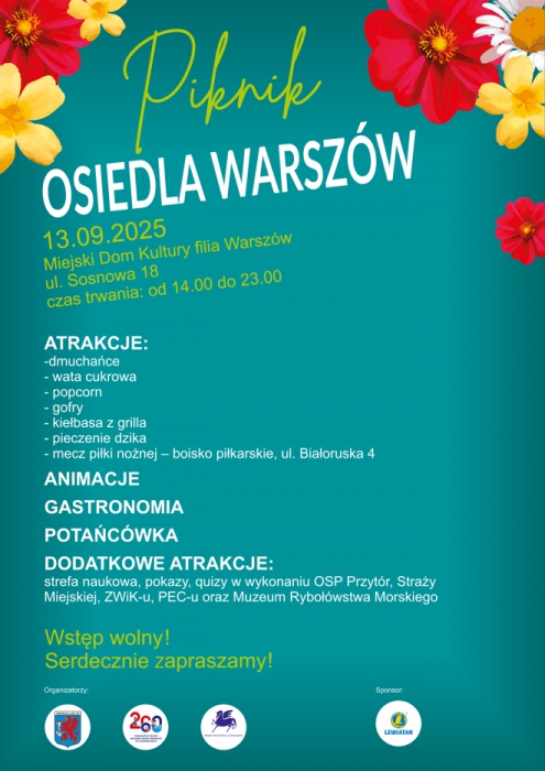 Mieszkańcy Świnoujścia mogą szykować się na wyjątkowe wydarzenie integracyjne. Miejski Dom Kultury oraz Zarząd Osiedla Warszów zapraszają w najbliższą sobotę, 13 września 2025 roku, na Piknik Osiedla Warszów. Spotkanie rozpocznie się o godzinie 14:00 na placu przy Filii MDK przy ul. Sosnowej 18.