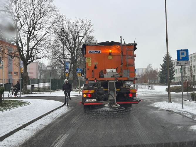 Dziś od godziny 4:00 rano prowadzone były działania interwencyjne związane z usuwaniem śniegu i gołoledzi na ulicach, chodnikach i ścieżkach rowerowych, aby mieszkańcy mogli bezpiecznie zdążyć do pracy lub odwieźć dzieci do szkół i przedszkoli. Większość ulic jest już czarna, na pozostałych pozostaje błoto pośniegowe.Za zimowe utrzymanie terenów miasta odpowiada firma Remondis Szczecin Sp. z o.o., realizując prace zgodnie z umową zawartą z gminą. Wykonawca prowadzi całodobowy monitoring warunków pogodowych i obserwuje prognozy oraz ostrzeżenia meteorologiczne co najmniej czterokrotnie na dobę. Całodobowe pogotowie zimowe obejmuje dyżury obsługi dyspozytorskiej, technicznej oraz wykwalifikowanych pracowników obsługujących sprzęt specjalistyczny, a także ekipę do oczyszczania ręcznego. Sprzęt podstawowy i pomocniczy pozostaje w pełnej dyspozycji technicznej przez całą dobę, aby zapewnić szybkie reagowanie na zmieniające się warunki.
