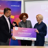 Podczas uroczystości, która odbyła się w poniedziałek 1 grudnia br., przedstawiciel Związku Cyfrowa Polska podziękował samorządowi za włączenie się i aktywne wspieranie rozwoju edukacji cyfrowej w świnoujskich szkołach, a następnie wręczył Prezydent Miasta Joannie Agatowskiej statuetkę „Świnoujście przyjazne cyfrowej edukacji”.