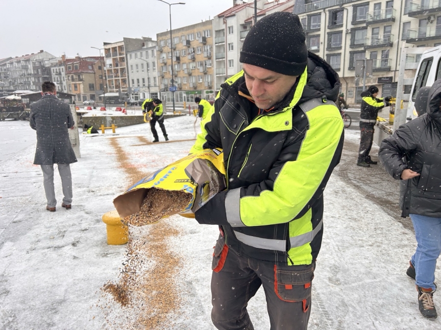 1000 kilogramów specjalistycznej karmy zostanie rozmieszczone w miejscach, gdzie najczęściej przebywają ptaki - wzdłuż wybrzeża Władysława IV i w Parku Zdrojowym.
