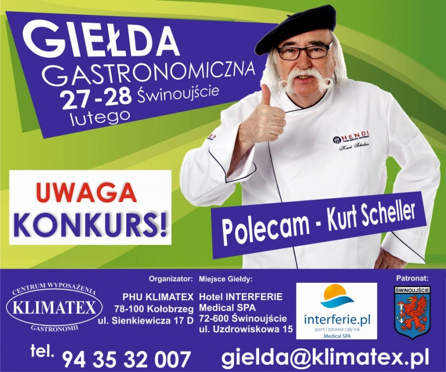 Giełda odbędzie się pod patronatem Kurta Schellera, znanego szefa kuchni i krytyka kulinarnego oraz Prezydenta Miasta Świnoujście Janusza Żmurkiewicza