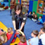 Czytający harcerze zrobili to tak umiejętnie, że wszyscy słuchali jak zaczarowani. W czasie spotkania, starsze przedszkolaki rozwiązywały przygotowane wcześniej zagadki dotyczące ważnych informacji na temat swojej ojczyzny. Na zakończenie mogli dowiedzieć się jak wygląda mundur harcerski, co oznaczają kolorowe plakietki i elementy umundurowania. Na koniec wszyscy słuchacze w nagrodę otrzymali biało-czerwone cukierki.