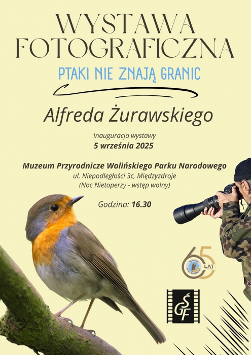 5 września 2025 — Muzeum Przyrodnicze Wolińskiego Parku Narodowego serdecznie zaprasza na inaugurację nowej wystawy fotograficznej Alfreda Żurawskiego pod tytułem „Ptaki nie znają granic”. Wernisaż odbędzie się 5 września o godzinie 16:30 w siedzibie muzeum, przy ul. Niepodległości 3c w Międzyzdrojach.