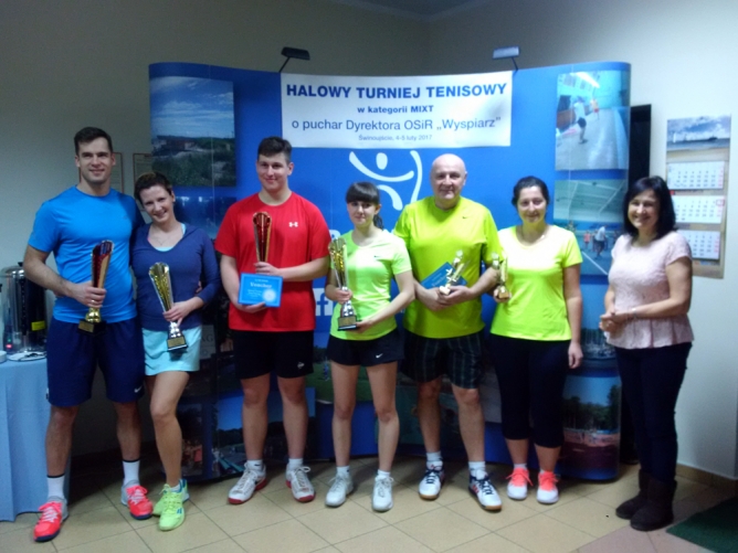W ten ostatni weekend w hali tenisowej Ośrodka Sportu i Rekreacji „Wyspiarz” rozegrany został Turniej Tenisa Ziemnego w kat. MIXT o Puchar Dyrektora OSiR. W turnieju wzięło udział 10 par. W piątek wieczorem odbyło się spotkanie organizacyjne turnieju i losowanie, a w sobotę o godz. 15:00 rozpoczęły się gry eliminacyjne.